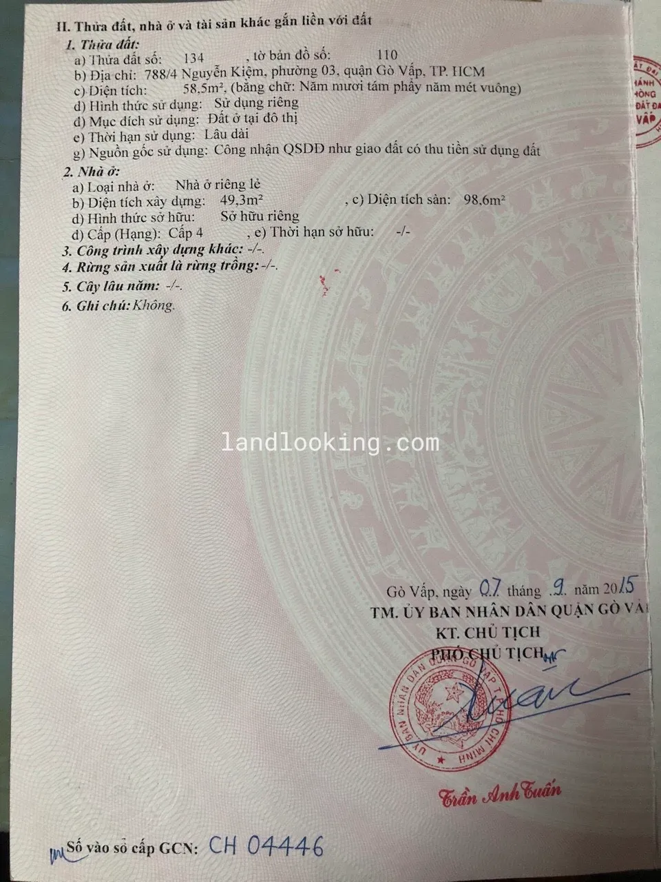 landlooking.comTP. Hồ Chí MinhQuận Gò VấpBán nhà 788/4 Nguyễn Kiệm, Phường 3, Gò Vấp DT: 4.5x13m 1 trệt 1 lầu giá 6.8 tỷ LH 0919468001
